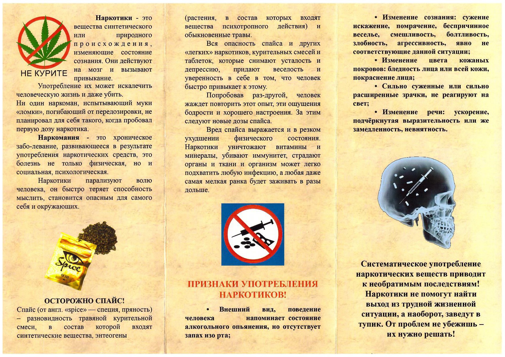 Методические рекомендации по профилактике употребления наркотических, токсических веществ, спайса