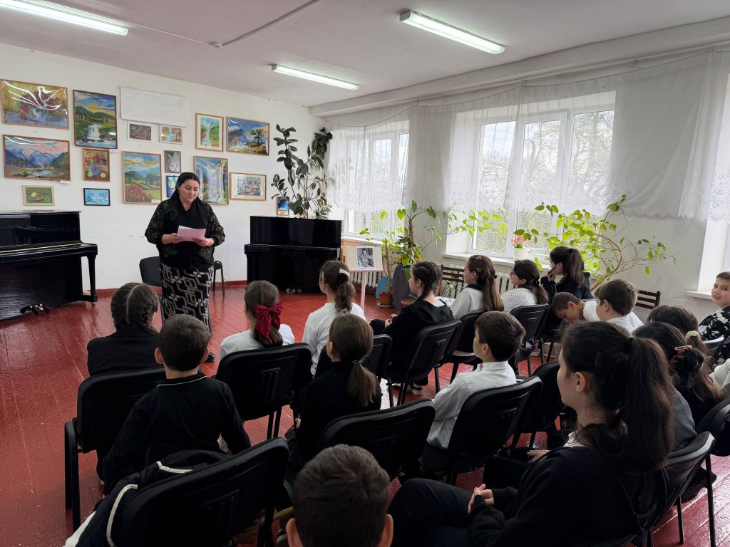 В целях воспитания духовно нравственных ценностей 24 апреля в МКУ ДО «Детская музыкальная школа» с.п. Яникой совместно со структурным подразделением МКУК РКДЦ СДК с.п. Яникой прошло мероприятие о жизни и творчестве Султанбека Абаева.